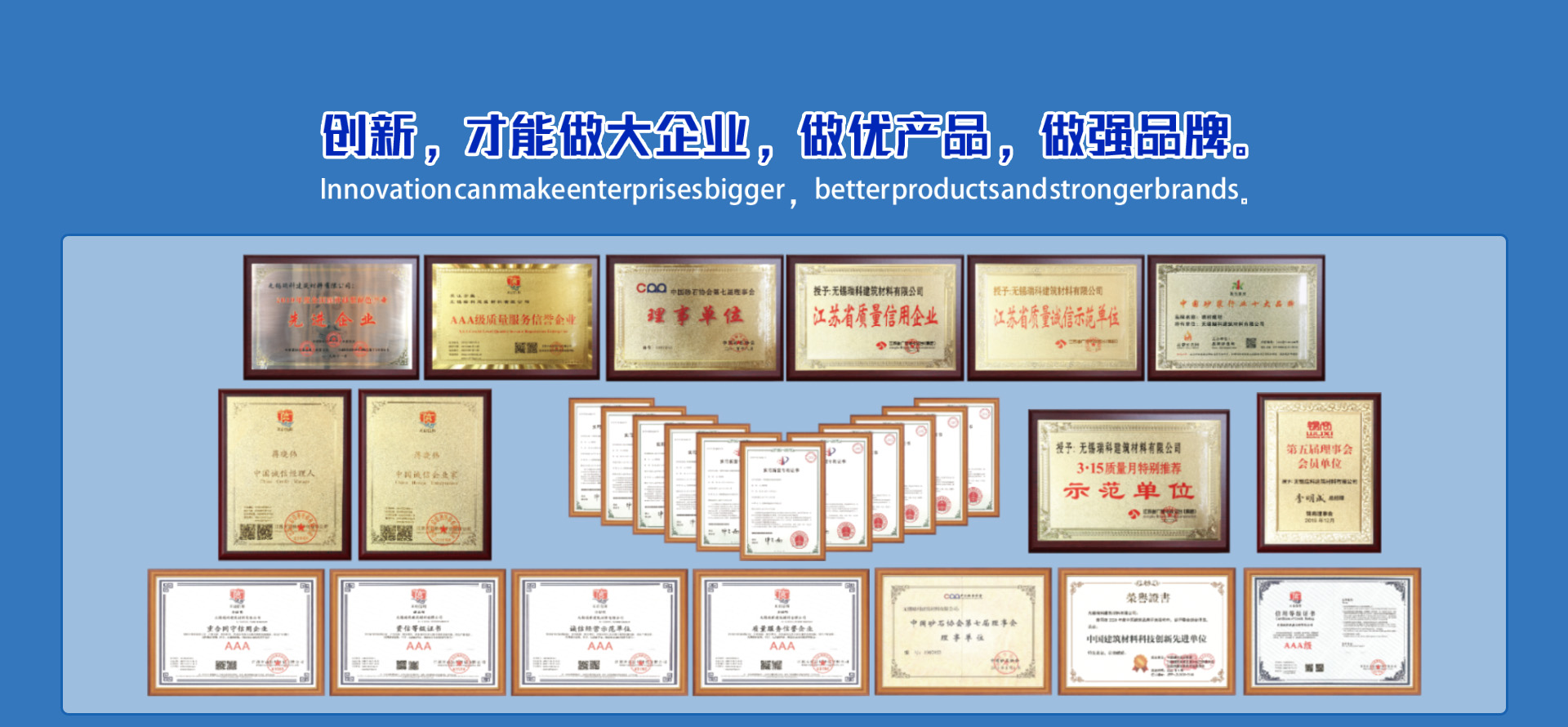 無論過去,現在和將來,公司將一如既往地堅持“瑞科高質建材,開創綠色未來”的企業理念,以科學的管理,先進的技術,合理的價格,優質的服務立足于市場,以誠信贏得客戶。